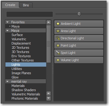 Maya为我们提供了多种灯光类型,每一种独特的类型都会在场景中起到不同的,甚至是无可替代的作用。为场景或者单独的物体决定灯光类型是很重要的,巧妙的组合使用灯光才能达到想要的效果。如图1-13所示。