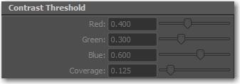注: Number of Samples(数字取样),Multi-pixel Filtering(像素过滤),Contrast Threshold(对比度阈值)这些属性里的参数会随着产品质量和边缘抗锯齿里的参数改变而改变。