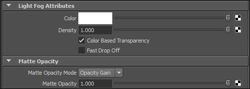Matte Opacity:此属性可控制灯雾在alpha通道内的透明度,或使灯雾不产生任何alpha通道。这里如果用户想要得到一个可以控制的Alpha参数,那么就要依靠Matte Opacity选项。
