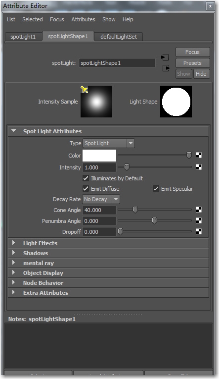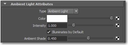 环境光可以均匀的照亮场景中每一个物体,而这个“均匀(Ambient Shape)”的数值也是由用户来控制。如果数值为1时将被看作一个点光源。
