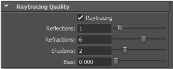 要注意的是,在使用Ray Trace Shadows(光线追踪阴影)方式时,还需要在菜单栏中Windows→Rendering Editors→Render Globals(渲染全局设置)面板中找到Raytracing Quality(光线跟踪质量)选项栏,勾选打开Raytracing(光线跟踪)选项,从而启动渲染的光线追踪计算功能,否则是渲染不出Ray Trace Shadows(光线追踪阴影)效果的。如图1-47所示。