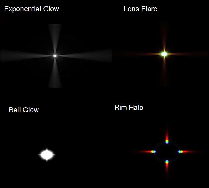 Halo Types:光晕(Halo)是直视光源时产生的。Halo与Glow很相似,只是衰减速度更快,有不同的衰减类型供所示给用户选择。