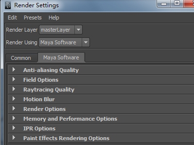 1.1.2 Software(默认软件渲染器)、mental ray(插件渲染器)