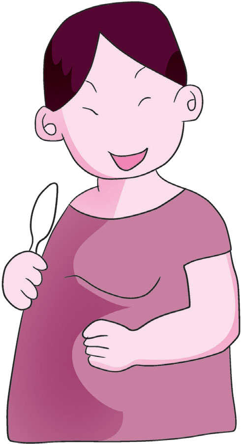 怀孕前4个月与未怀孕时每天热量的供给量相似,可参考“成人糖尿病患者每日热量供给量标准表”(见第25页),怀孕中、晚期每天热量供给量按标准体重×(30~35)千卡/公斤(体重)来计算。