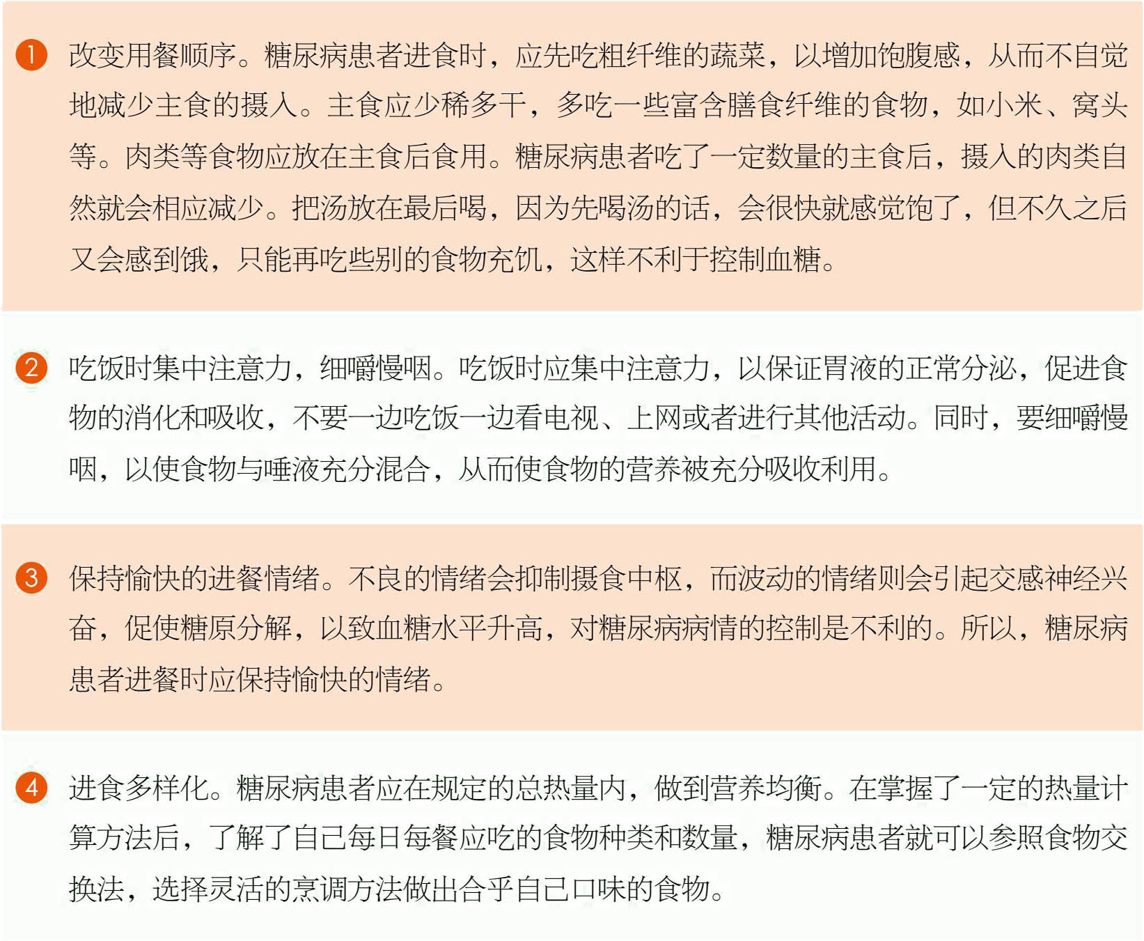 合理的饮食调养和良好的饮食习惯,有利于控制糖尿病病情的发展,还能避免并发症的发生。因此,对于病情较轻的糖尿病患者来说,养成良好的饮食习惯尤其重要。