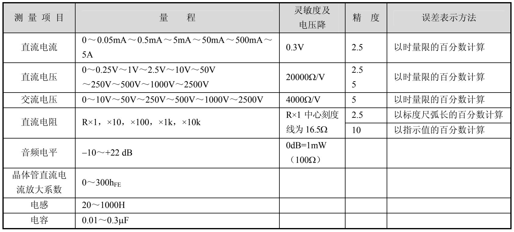 ( 15 )表 2-2 列出了 MF47 型万用表的测量范围及参数。