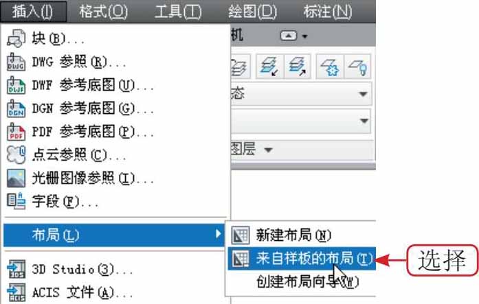 STEP 01 显示菜单栏,选择“插入”|“布局”|“来自样板的布局”命令,如图2-26所示。