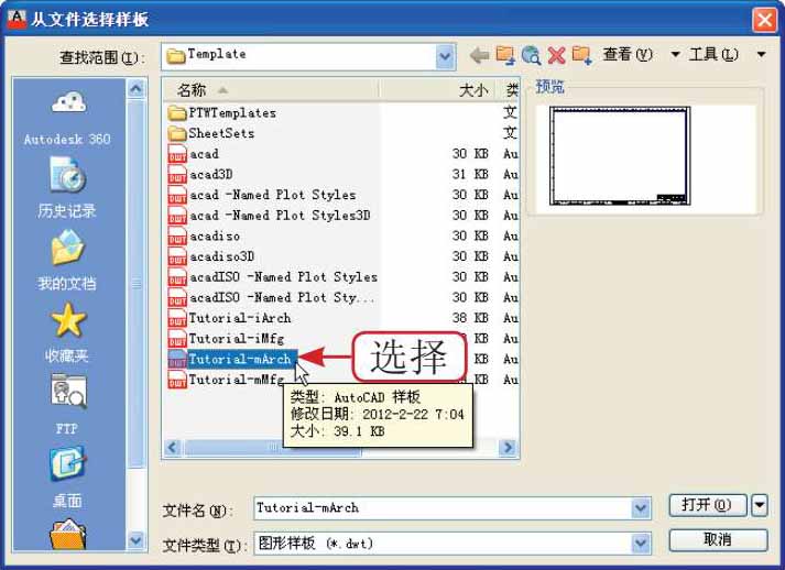 STEP 02 弹出“从文件选择样板”对话框,在“名称”列表框中选择相应的选项,如图2-27所示,单击“打开”按钮。