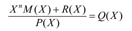 一种较方便的方法是用多项式来表示循环冗余检验过程,即使用多项式相应的系数来表示上述二进制数字中的1和0。例如,可以用多项式P(X) = X 5 + X 4 + X 2 + 1来表示上面的除数P(称为生成多项式)。因此,在接收端进行的运算可写为