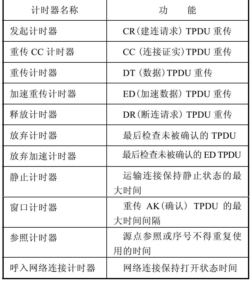 表2-5 OSI类4运输协议中的计时器