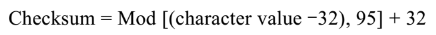 上式的含义是:将报文的所有字符的ASCII码值减去32后相加,将所得结果进行模95后,所得值加上32即为检验和字节。