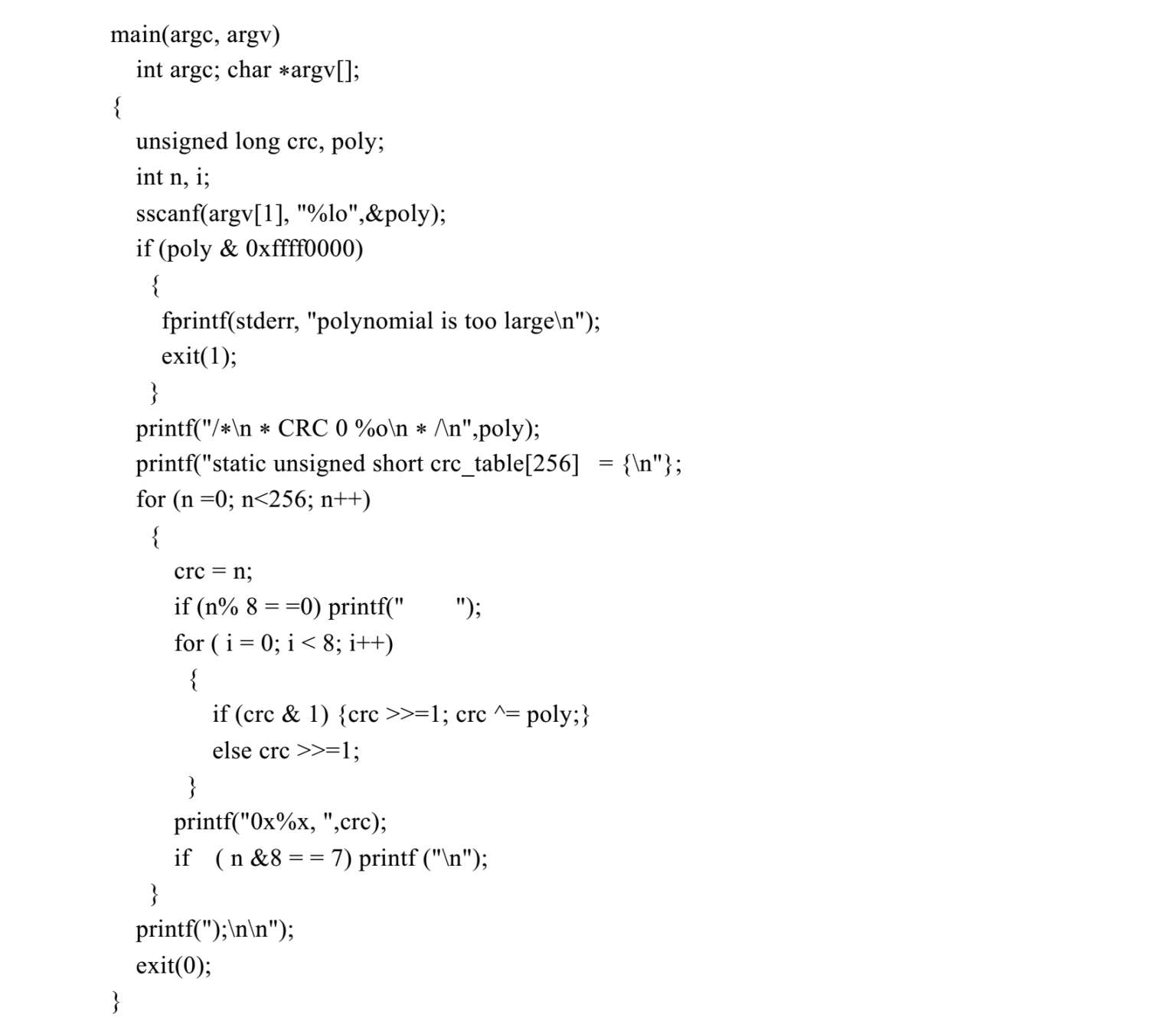 程序crc_init.c的源代码如下: