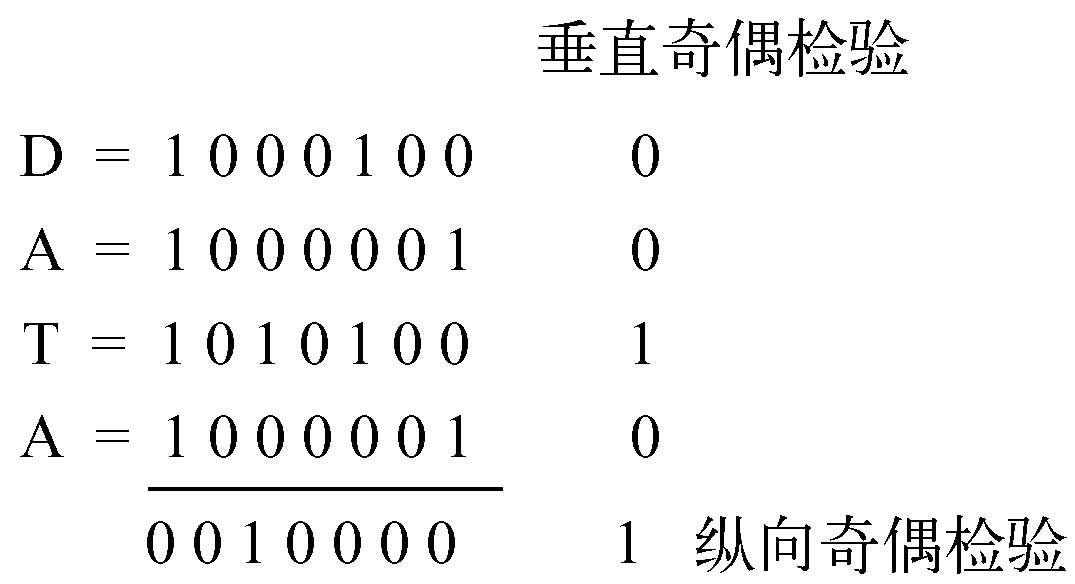 通常p值等于一个字符的长度,因此有时也将垂直冗余检验称为字符奇偶检验。这种奇偶检验方法能检测出每列中的所有奇数个位的错,但检测不出偶数个位的错。对于突发错误而言,奇数位错与偶数位错的概率差不多是相等的,因而对差错的漏检率接近50%。