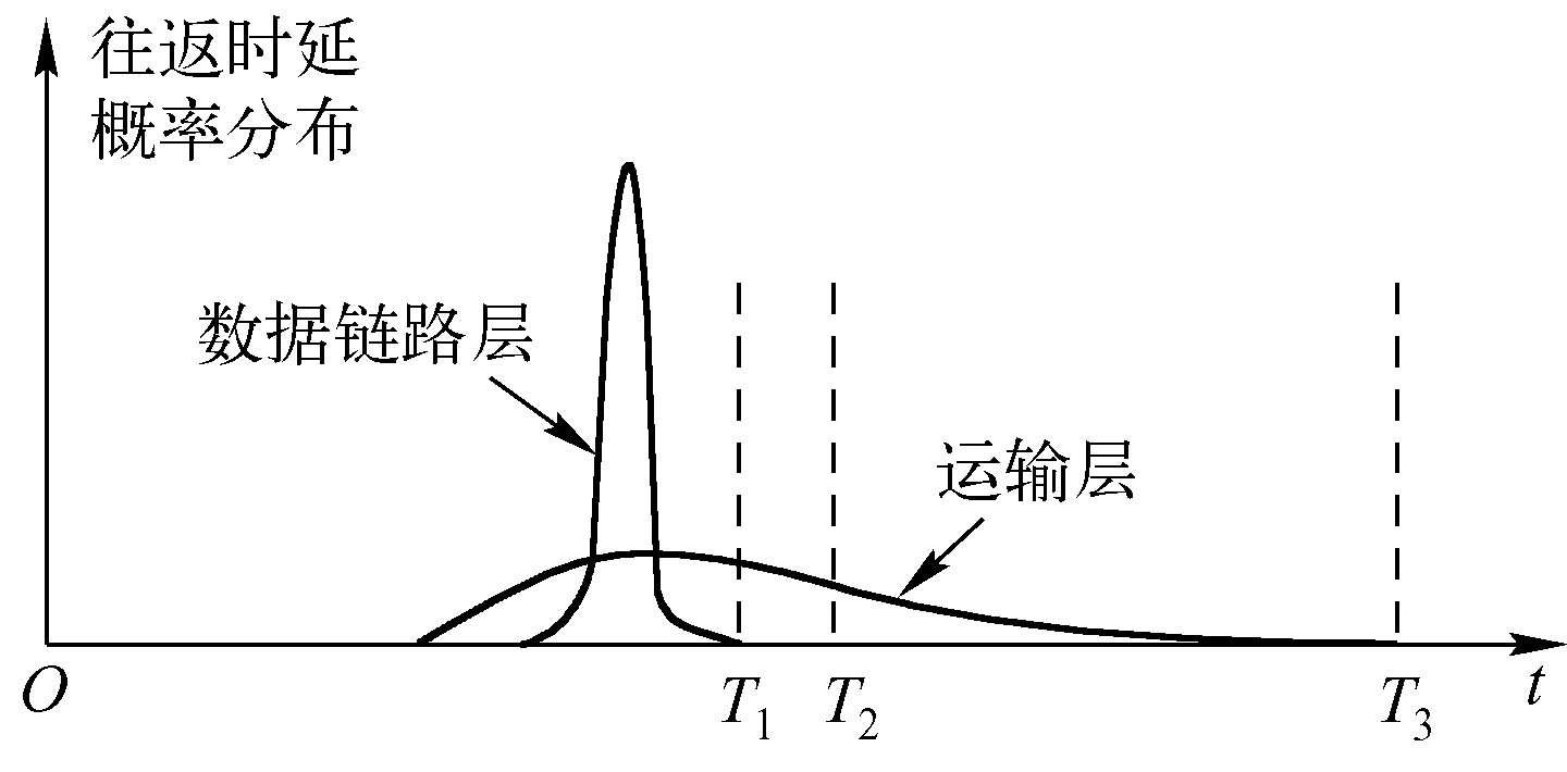 图2-12 数据链路层和运输层往返时延的概率分布