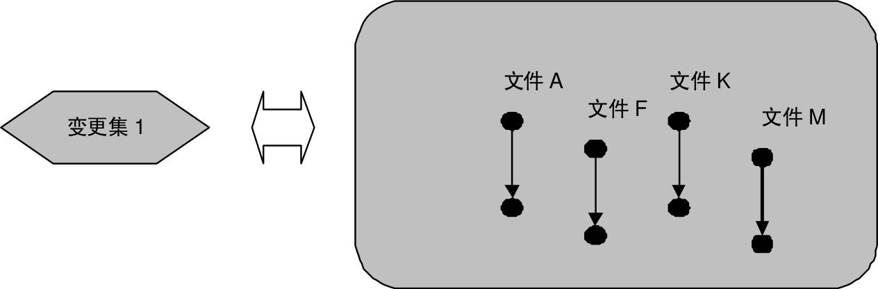 从源代码实际变动的角度看,变更集是一个或多个文件上的一处或多处具体的代码改动的集合。也就是说,一个变更集涉及一个或多个文件,而每个文件的内容发生了变化,从修改前的版本变为修改后的版本(见图3-1)。