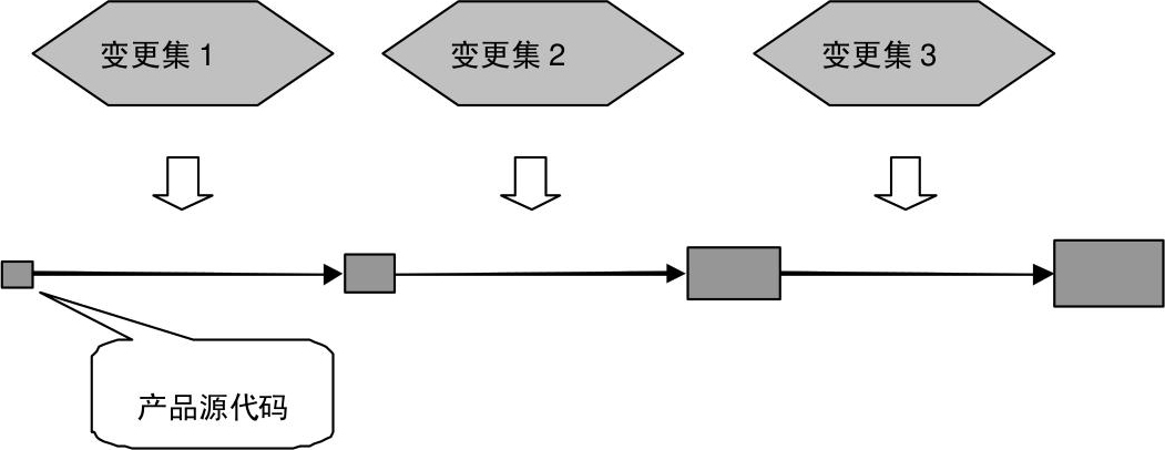 这样的一个一个变更集,累加在一起,实现了整个软件的从无到有,直到开发完成(见图3-2)。