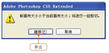 打开一个提示对话框,提示新画布小于当前画布,将对图像进行一些裁剪,单击“继续”按钮进行确认。