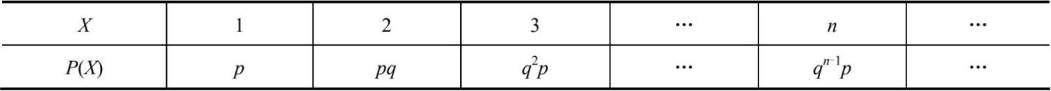 在打靶试验中,假设单次打靶击中的概率为p,脱靶的概率为q = 1- p,持续射击,直到射中为止,以r.v. X表示射击次数,则X的概率分布为