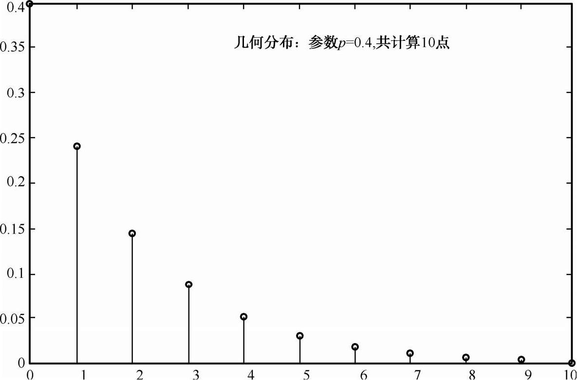 称r.v. X的这种分布为几何分布。取参数p=0.4 的几何分布如图 2-8 所示。