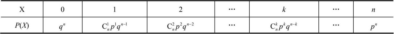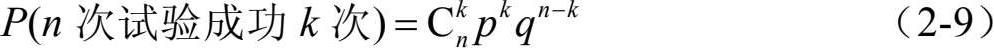假设在单次随机试验(如打靶试验)中,成功(击中)的概率为p,失败(脱靶)的概率为q=1-p。如果把这个试验独立地进行n次,则根据独立性并应用组合分析不难计算,在n次试验中成功k次的概率为