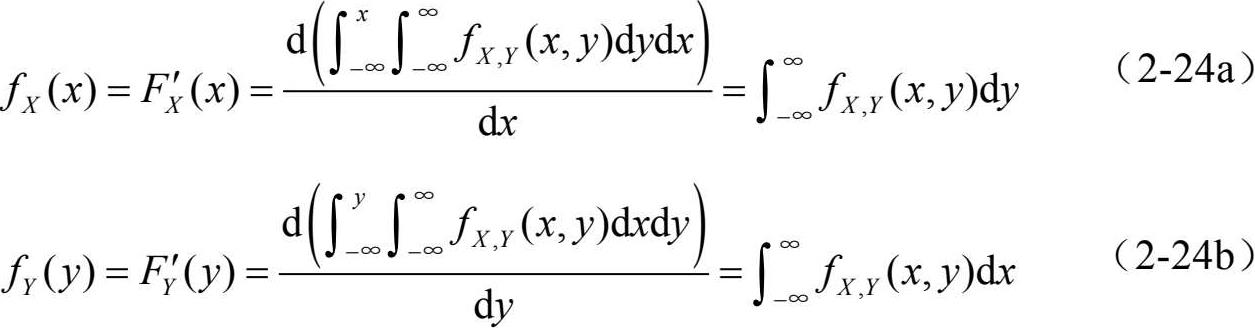 二维连续型随机变量的概率分布是由其联合概率密度函数f X ,Y(x,y)来表征的(如图 2-16 所示)。f X ,Y(x,y)需要满足: