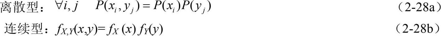 在概率论中,很多实际问题需要用多个随机变量来描述,如打靶击中点的坐标(X,Y)、掷两颗色子的结果(X 1 , X 2 )。这种由多个随机变量构成的变量组称为随机矢量或随机向量,其中随机变量的个数称为维数。由于随机矢量是由随机变量构成的,所以也有离散型和连续型之分。