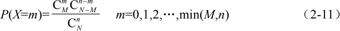 假设袋子里有N个形状相同的球,其中有M个红球,N-M个黑球,从中任意抽取n个球,以r.v. X表示抽得的红球的数目,则X的概率分布为
