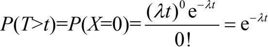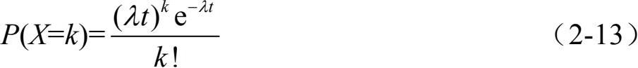 ,其中P(T>t)表示在时间段t内没有新的事件点到达的概率。根据泊松分布,在时间段t内有k个点到达的概率为