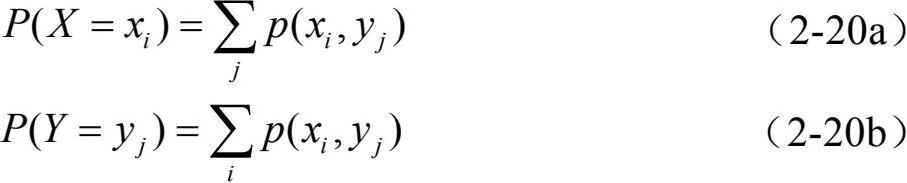 由二维离散型变量(X, Y)的联合分布可以很容易得到每个分量X、Y各自的概率分布,称其为二维离散型变量(X, Y)的边缘分布,由联合分布计算边缘分布应用如下公式: