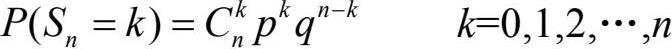 以X i 表示伯努利型随机变量,即P(X i =1)=p,P(X i =0)=q。以随机变量S n 表示n个独立的X i 之和,则S n 服从二项分布B(n, p),即