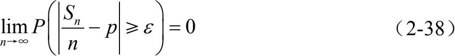 设单次伯努利试验中,事件A发生的概率为p,0≤p ≤ 1,以S n 表示前n次试验中A发生的次数,则对于∀ ε> 0,有