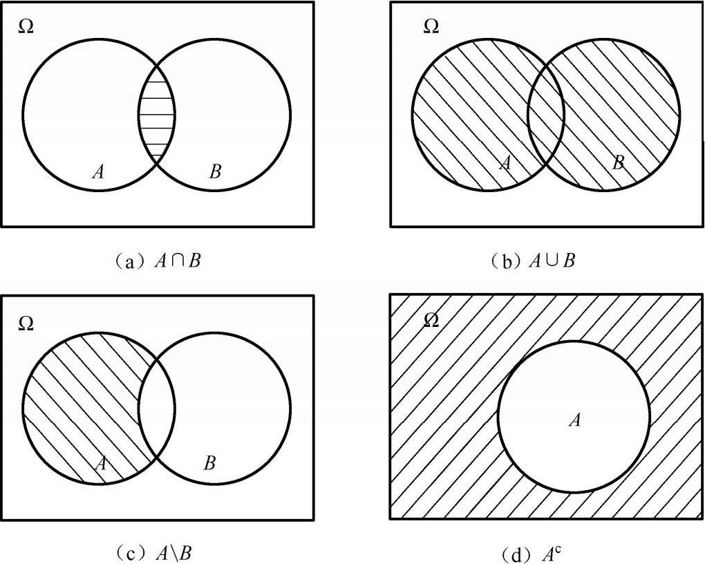 图 1-1 集合运算的文氏图表示