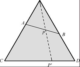 【例 1-3】图 1-3 中线段AB和CD是点构成的集合,对于AB上的任意一点P,都可以用图示的方法对应到CD上的一点P′,反之亦然,所以集合AB和CD是对等的。