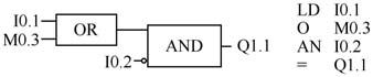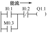 在分析梯形图中的逻辑关系时,为了借用继电器电路图的分析方法,可以想象左右两侧垂直母线之间有一个左正右负的直流电源电压(有时省略了右侧的垂直母线),当图 1-6 中I0.1 与I0.2 的触点接通,或M0.3 与I0.2 的触点接通时,有一个假想的“能流”(Power Flow)流过Q1.1 的线圈。利用能流这一概念,可以帮助我们更好地理解和分析梯形图,能流只能从左向右流动。