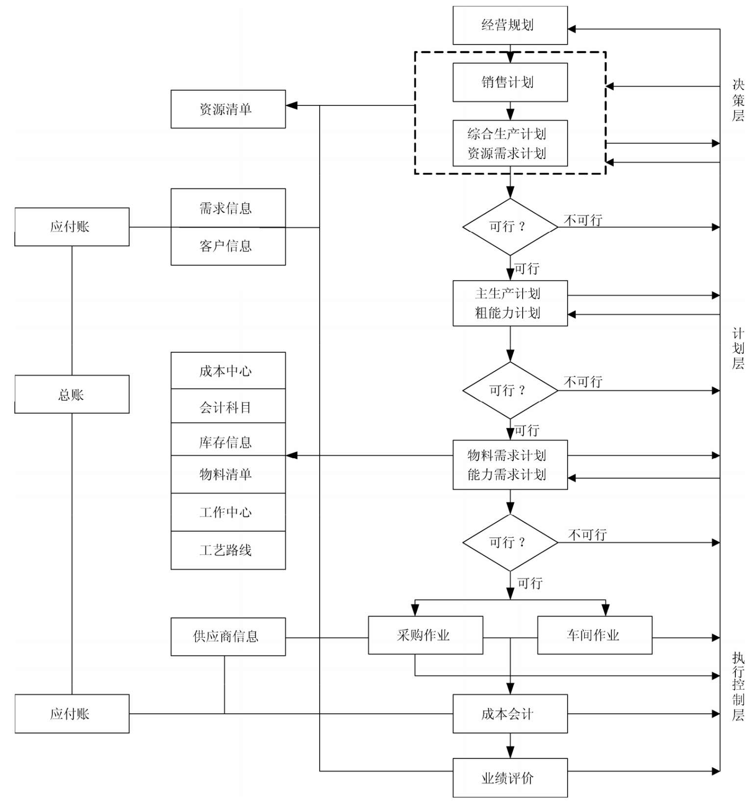(1)自顶向下和自底向上相结合的设计原则。自顶向下和自底向上的方法是系统建模方法中两种最基本、最常用的建模方法。自顶向下的方法是从全局走向局部的方法,自底向上的方法是一种从局部走向全局的方法;自上而下是系统分解的过程,而自下而上则是一种集成的过程。在设计一个供应链系统时,往往是先由主管高层根据市场需求和企业发展规划作出战略规划与决策,然后由下层部门实施;而战略规划与决策是根据基层第一线实际情况制定的,而且基层第一线要及时向高层反馈战略规划与决策的实施情况,等等。
