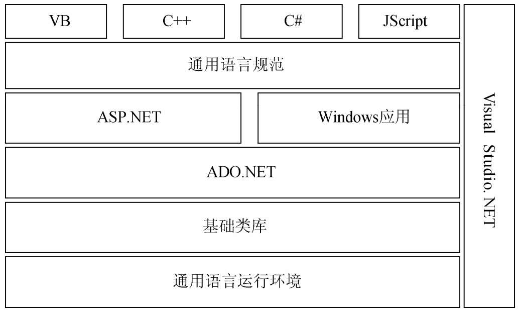 微软的.NET是基于一组开放的互联网协议而推出的一系列的产品、技术和服务。.NET开发框架在通用语言运行环境基础上,给开发人员提供了完善的基础类库、数据库访问技术及网络开发技术,开发者可以使用多种语言快速构建网络应用。它由通用语言运行环境、基础类库、ADO.NET、ASP.NET和Windows应用、通用语言规范、高级编程语言(如VB、C#)等组成。