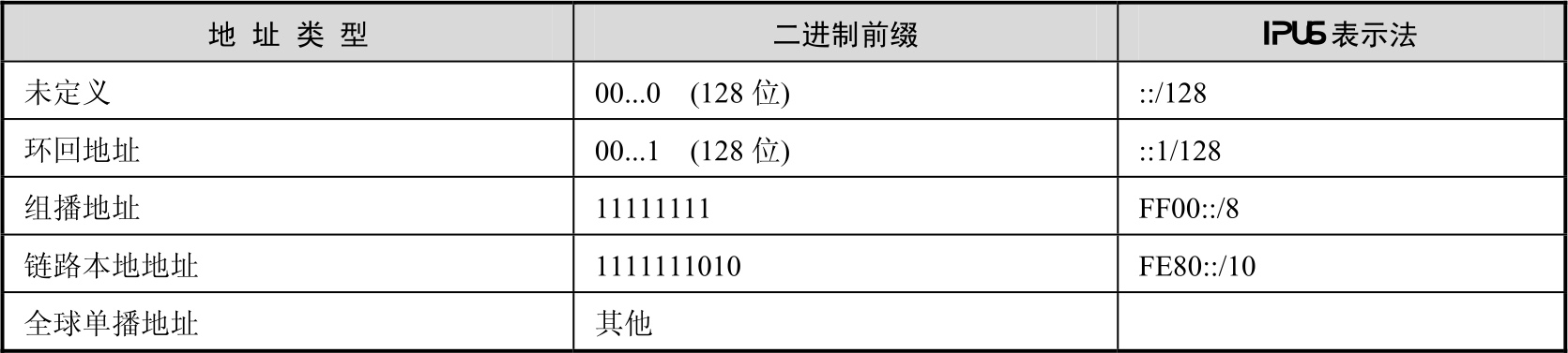 通过IPv6地址的前几位,即可确定其地址类型,具体如表2-1所示。