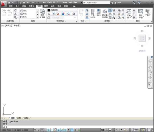AutoCAD 2012系统默认打开模型空间,用户可以选择需要的布局。