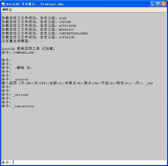 (3)对当前命令窗口中输入的内容,可以按“F2”键用文本编辑的方法进行编辑,如图1-16所示。AutoCAD文本窗口和命令窗口相似,它可以显示当前AutoCAD进程中命令的输入和执行过程,在执行AutoCAD某些命令时,它会自动切换到文本窗口,列出相关信息。