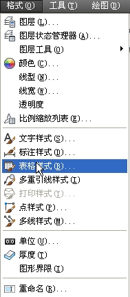 这种类型的命令,后面带有省略号。如单击菜单栏中的“格式”菜单,选择其下拉菜单中的“表格样式(B)...”命令,如图1-8所示,屏幕上就会打开对应的“表格样式”对话框,如图1-9所示。
