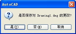 执行上述命令后,若用户对图形所做的修改尚未保存,则会出现如图1-35所示的系统警告对话框。单击“是”按钮系统将保存文件,然后退出;单击“否”按钮系统将不保存文件。若用户对图形所作的修改已经保存,则直接退出。