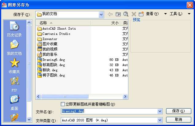 执行上述命令后,打开“图形另存为”对话框,如图1-34所示,AutoCAD用另存名保存,并把当前图形重命名。