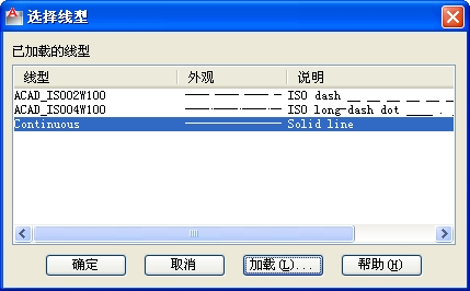 线型是指作为图形基本元素的线条的组成和显示方式,如实线、点画线等。在许多的绘图工作中,常常以线型划分图层,为某一个图层设置适合的线型,在绘图时,只需将该图层设为当前工作层,即可绘制出符合线型要求的图形对象,极大地提高了绘图的效率。