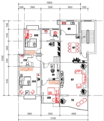 (2)标注各房间尺寸、家具陈设尺寸及布局尺寸,对于复杂的公共建筑,则应标注轴线编号。