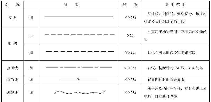 标准实线宽度b=0.4~0.8mm。