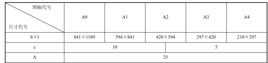 表2-1 图幅标准(单位:mm)