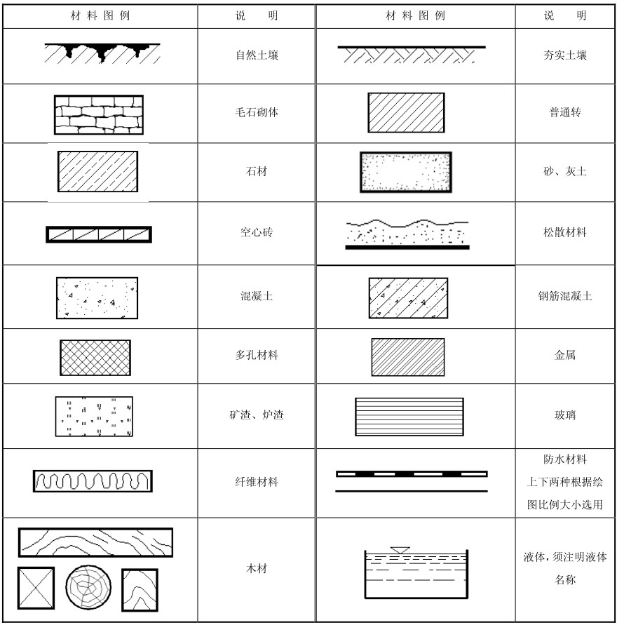 (3)标出材料断面图例。