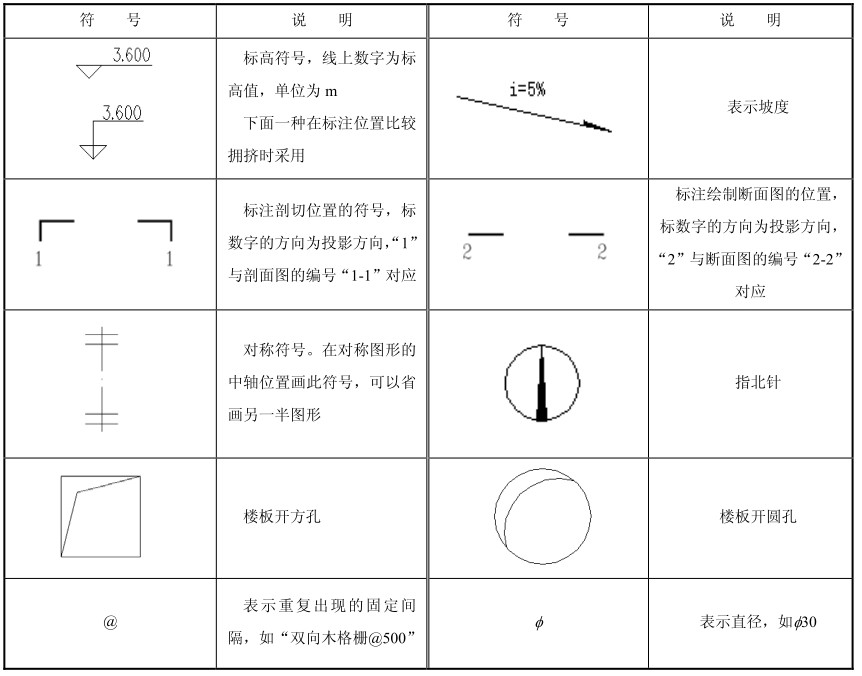 `表2-3 室内设计图常用符号图例