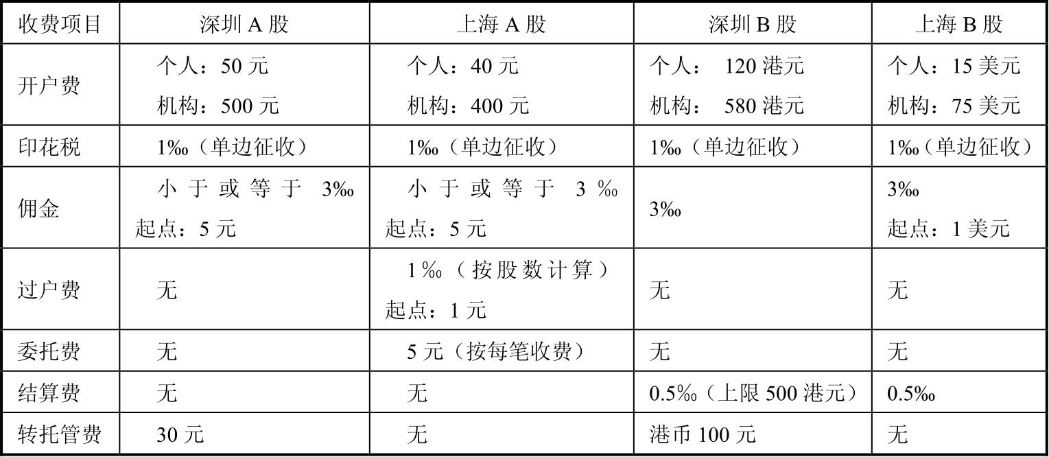(1)印花税:投资者在买卖成交后支付给财税部门的税收。上海股票及深圳股票均按实际成交金额的千分之一支付,此税收由证券商代扣后由交易所统一代缴。