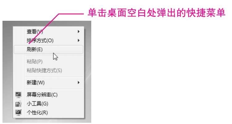 右击,全称为“单击鼠标右键”。该操作是指将鼠标指针指向目标位置后,中指稍微用力按下鼠标右键,并立即释放。单击鼠标右键后,通常会弹出相应的快捷菜单,如图1.29所示。